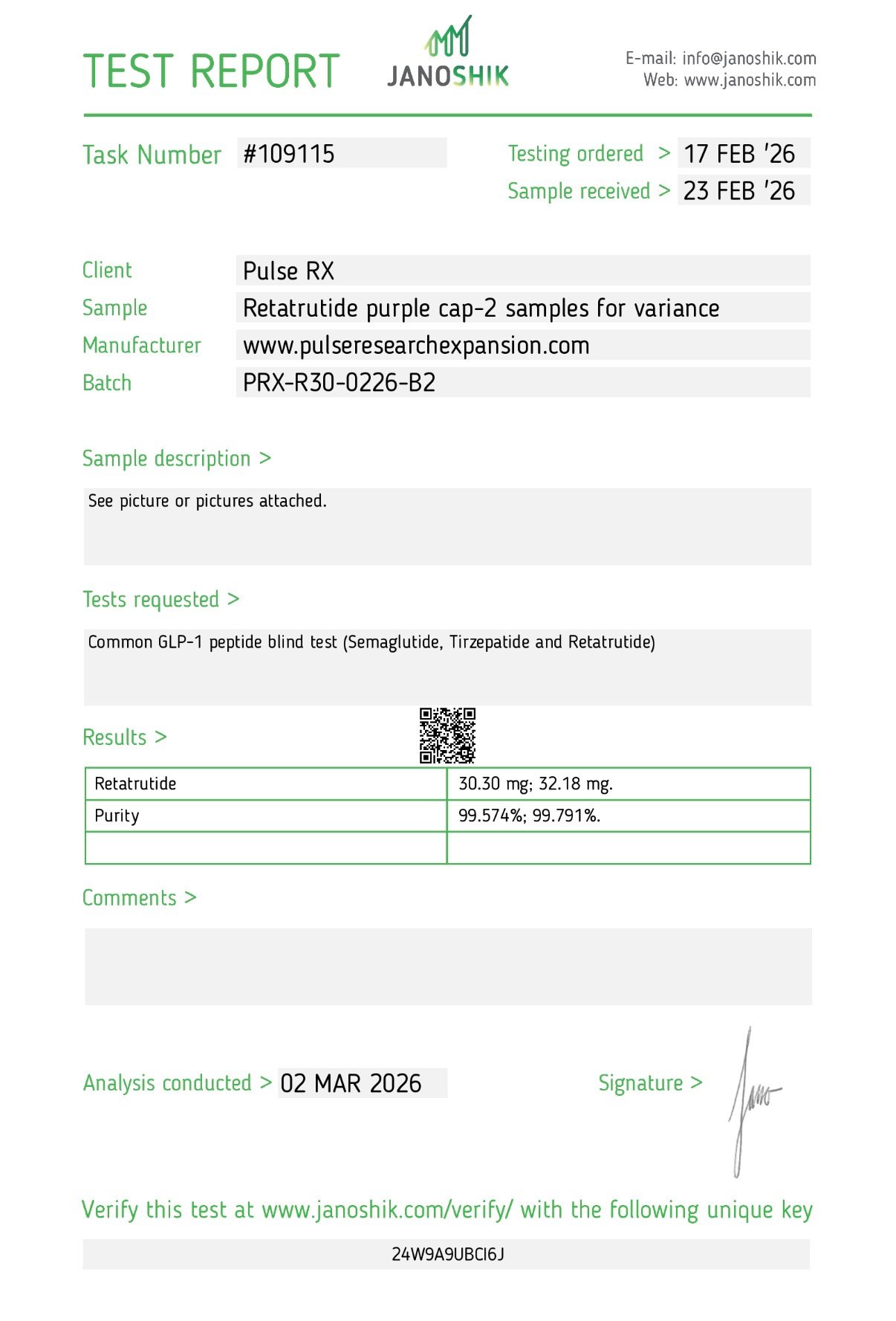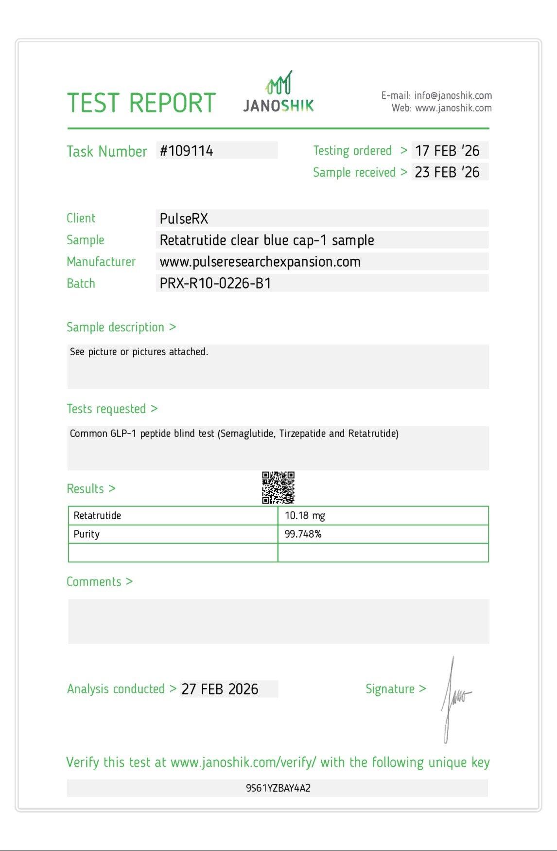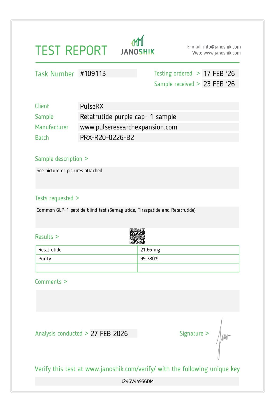 This product is sold strictly for laboratory research purposes only. It is not intended for human consumption, medical use, or as a therapeutic agent. Pulse RX does not provide medical advice. Always handle research compounds in accordance with applicable laws and safety protocols.