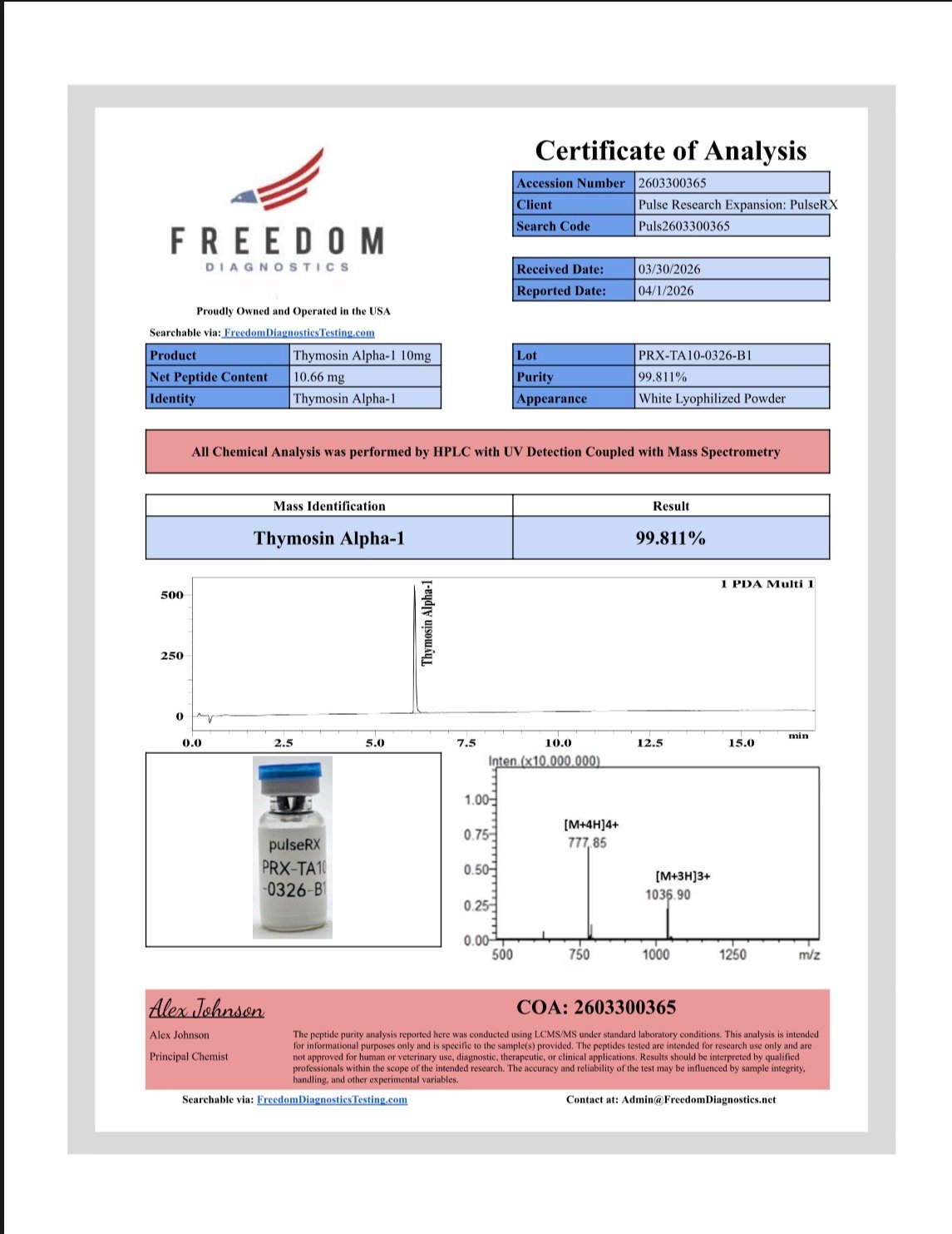 Thymosin Alpha-1 — 10MG (Batch Verified)